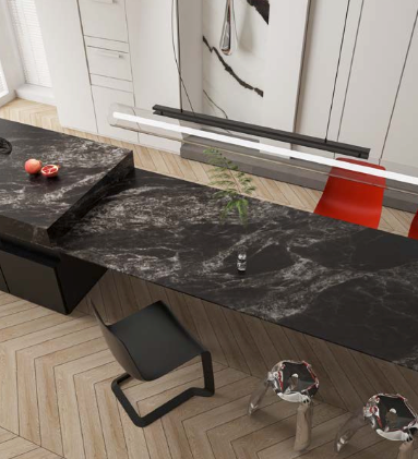 Ideal for a variety of architectural and interior applications, Midnight brings elegance and durability to kitchen countertops, bathroom vanities, fireplaces, and feature walls. The finish not only elevates the visual appeal but also makes the surface easy to clean and maintain, ensuring long-lasting beauty and practicality.
